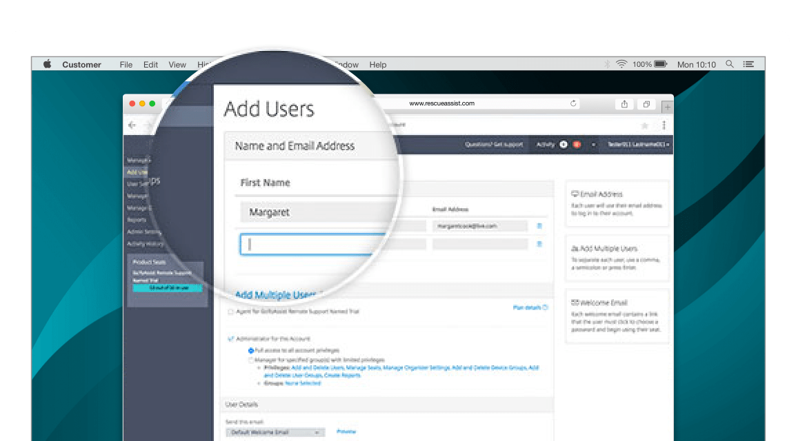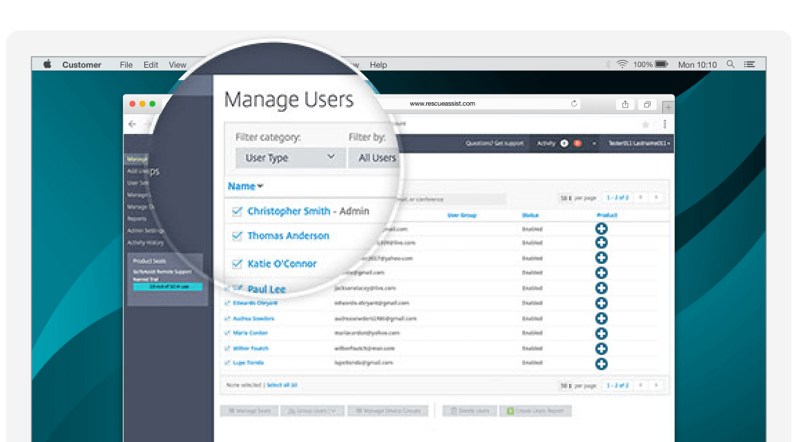 Your customers place a lot of trust in your team to access their computers and resolve their issues. By setting stricter technician permissions, you can ease their concerns and ensure a professional customer experience. RescueAssist lets you restrict unattended machine access, file transfer and remote control during a screen-sharing session.