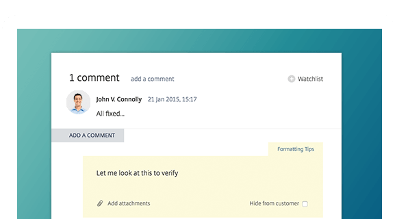 Lorsqu'il y a une mise à jour ou un problème avec l'un de vos services, vous pouvez alerter tout le monde en publiant un message. Publiez-le à l'interne pour votre équipe ou bien à l'externe, sur le portail clientèle. Les gens peuvent ensuite commenter pour partager leur avis ou poser des questions, et vous répondez tout aussi facilement.