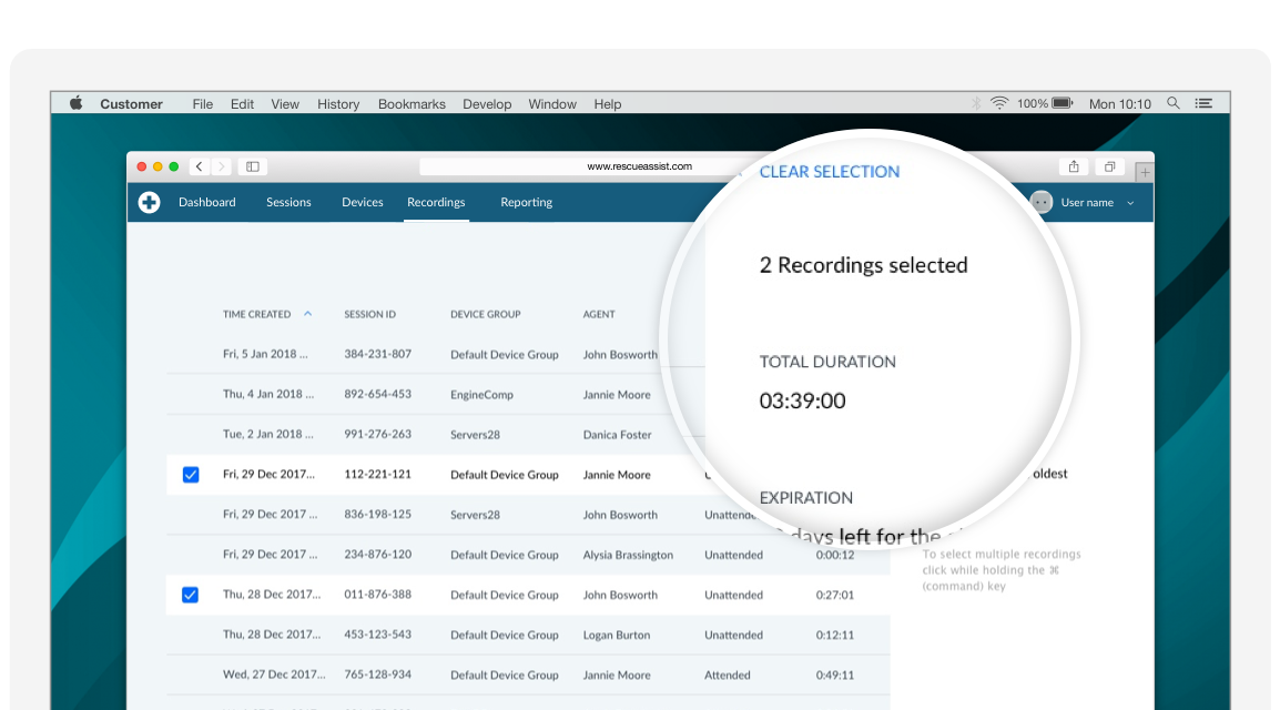For sessions that took place up to a year ago, you can run Custom Reports to quickly access the data. You can check these reports online or export them in a number of different formats, including PDF, XLS and CSV. And if you’ve enabled session recordings, you can simply download the screen-sharing videos as MPEG-4 files for future review.